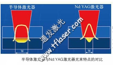 從上圖我們可以看出半導(dǎo)體激光器在焦點(diǎn)前后的光束發(fā)散明顯小于YAG激光器。