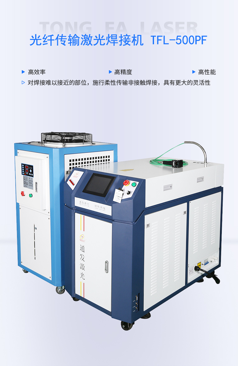 通發(fā)激光TFL-500PF光纖激光焊接機(jī),激光功率大,經(jīng)過光纖優(yōu)化獲得卓越的光束質(zhì)量,滿足1.5mm以內(nèi)料厚,熔深1mm以內(nèi)的廚衛(wèi),家電,高速不銹鋼激光焊接加工。