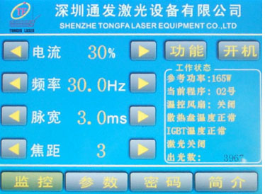 本模具激光焊機(jī)軟件可選擇中文或者英文界面,適合不同國(guó)度人員使用。對(duì)加工過(guò)程中的參數(shù)調(diào)節(jié),配有激光功率值供操作者參考,以便選擇合適的參數(shù)。